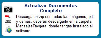 ![]() | Actualizar documentos, por separado es una opción, pera resolver situaciones en las que no puede visualizar imágenes o pdf. El fichero comprimido puede tener unos 1000 mb. |