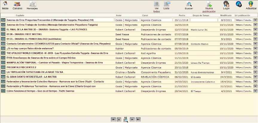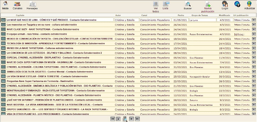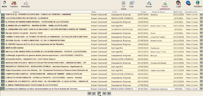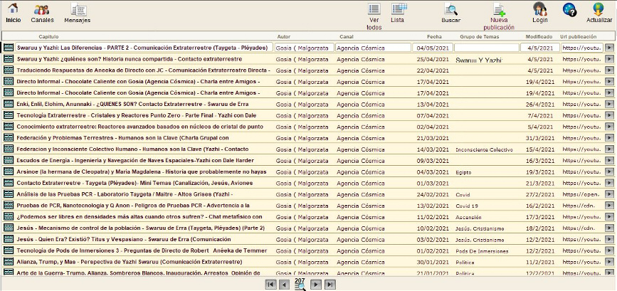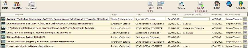 Por ejemplo si pulsa en el campo "Agencia Cósmica" le devolverá una lista con el canal "Agencia Cósmica"